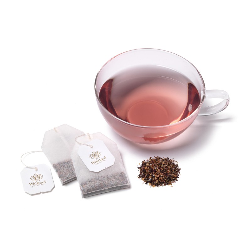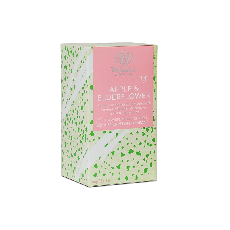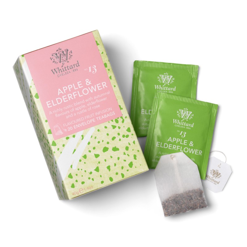 Skład: hibiskus, owoc dzikiej róży, 32% przecier jabłkowy, liście jeżyn, aromat kwiatu bzu, aromat jabłkowy.