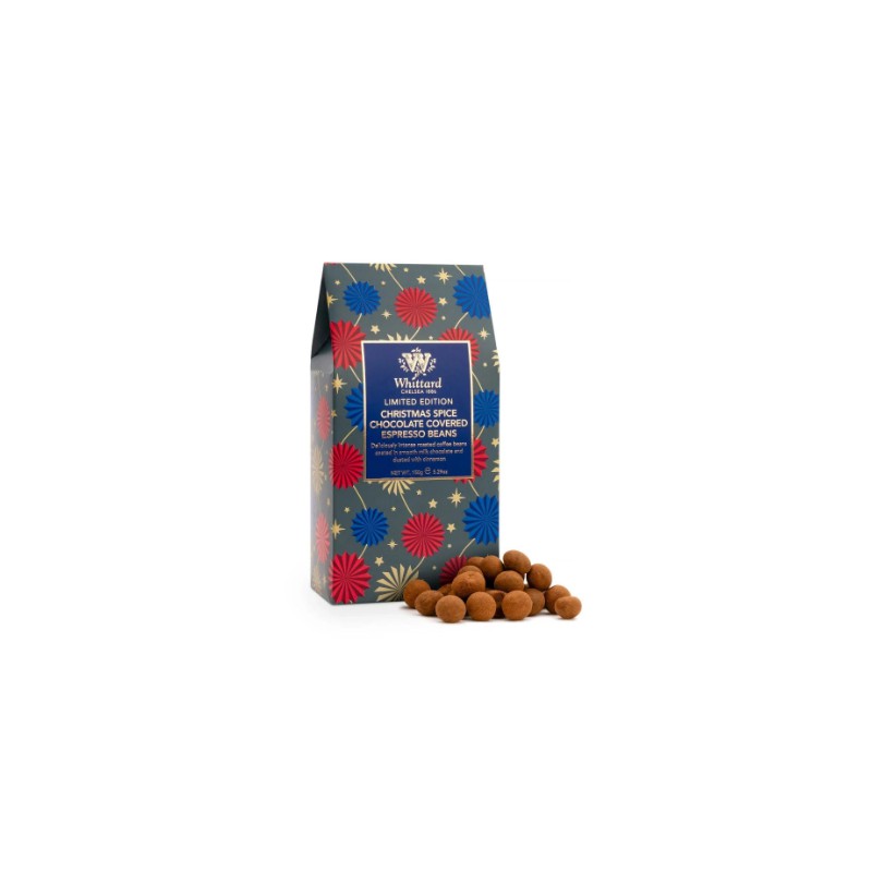Palone ziarna kawy otoczone mleczną czekoladą oraz obsypane cynamonem.